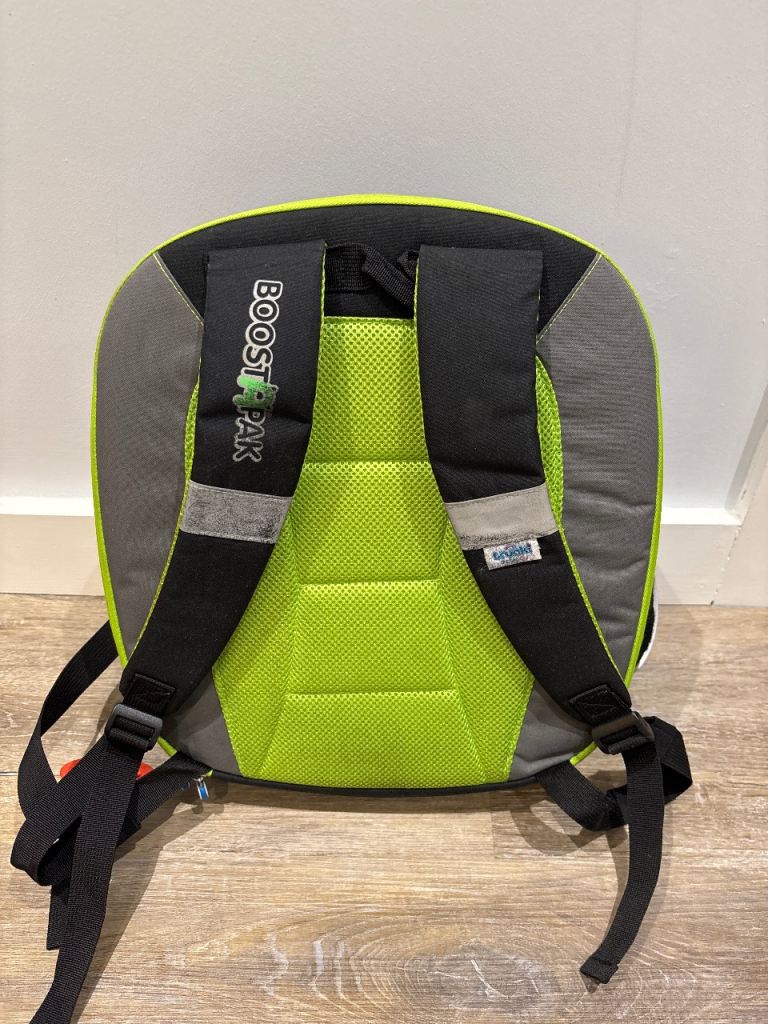 Child booster seat and backpack in one. Suitable for age 6 to 12.. In good condition. Available for collection only.