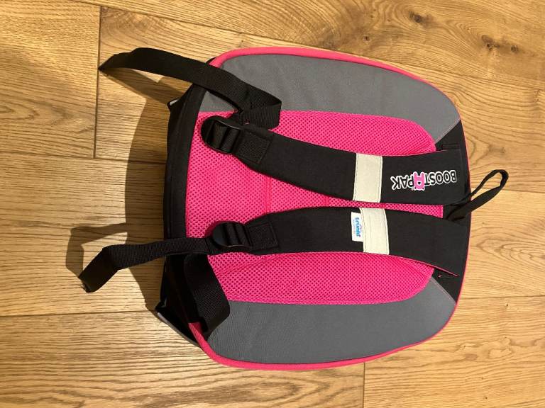 Trunki BoostApak booster seat in pink. Used but still in great condition. These are sturdy and great for taking on holiday as they have back pack straps and a roomy storage compartment where your little one can carry their toys etc. And saves the worry of renting one. Also great for lending to family and friends when they're giving your child a lift and don't have a car seat. For collection only please from Twickenham, TW1.