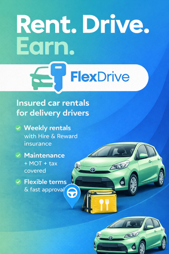 Weekly Rent Cars for Delivery Drivers, UberEats JustEat AmazonFlex, with Hire&Reward Insurance