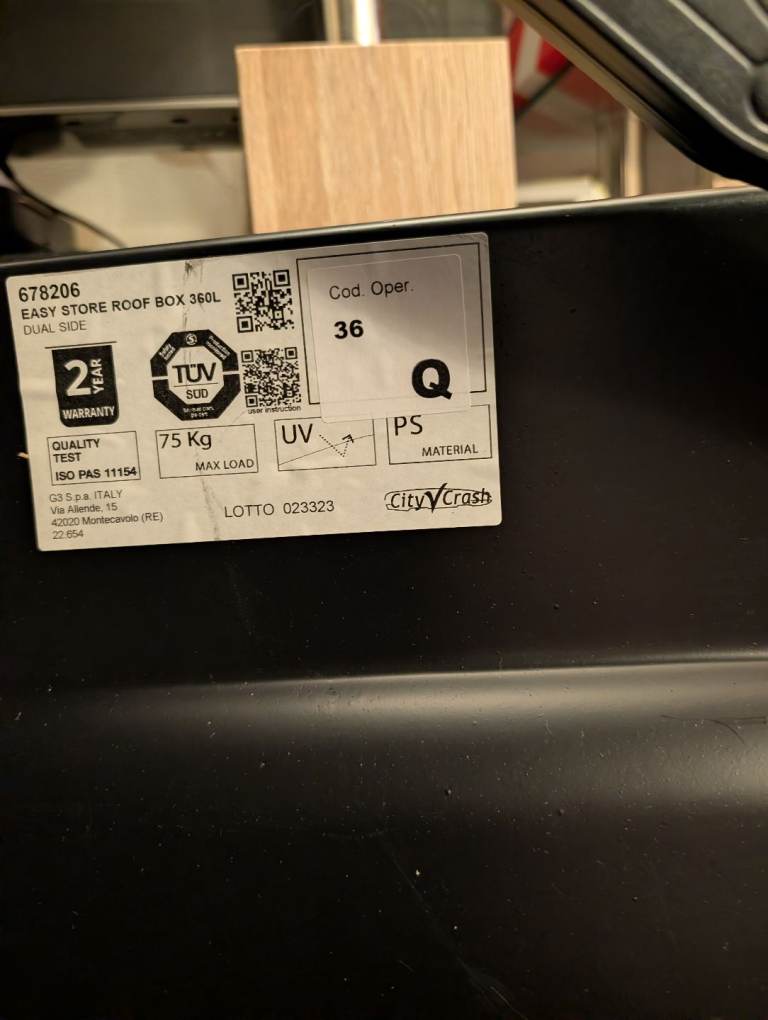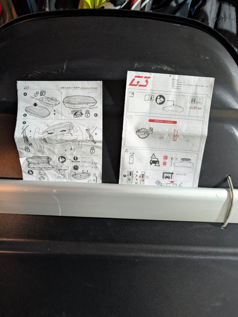 Posting for 3+ years360 Litre Dual opening Roof box/Top box/ (Model; G3 Bi-Cube 22.654) and bars for a Kia Niro..