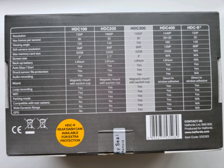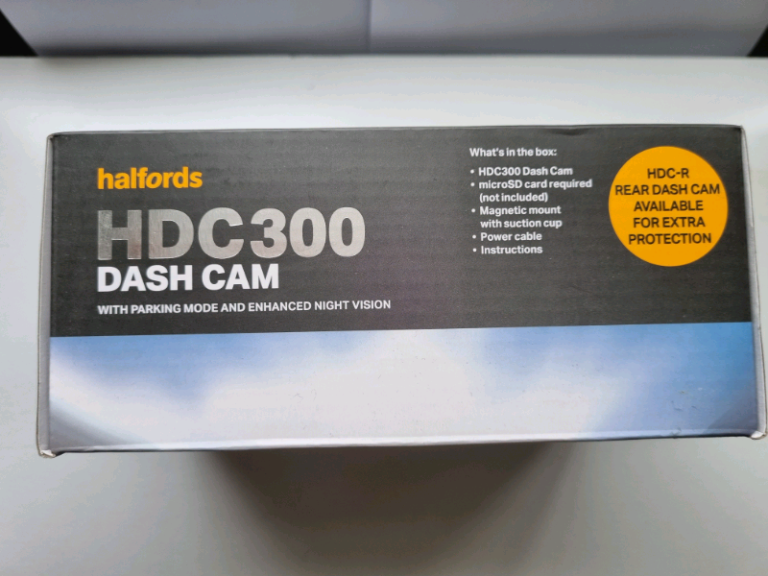 Brand new in box (See photos - security seal still intact) Halfords dash cam HDC300, Bought for £99 for partner a couple of years ago but ended up being an unwanted Christmas present. Has good reviews online.