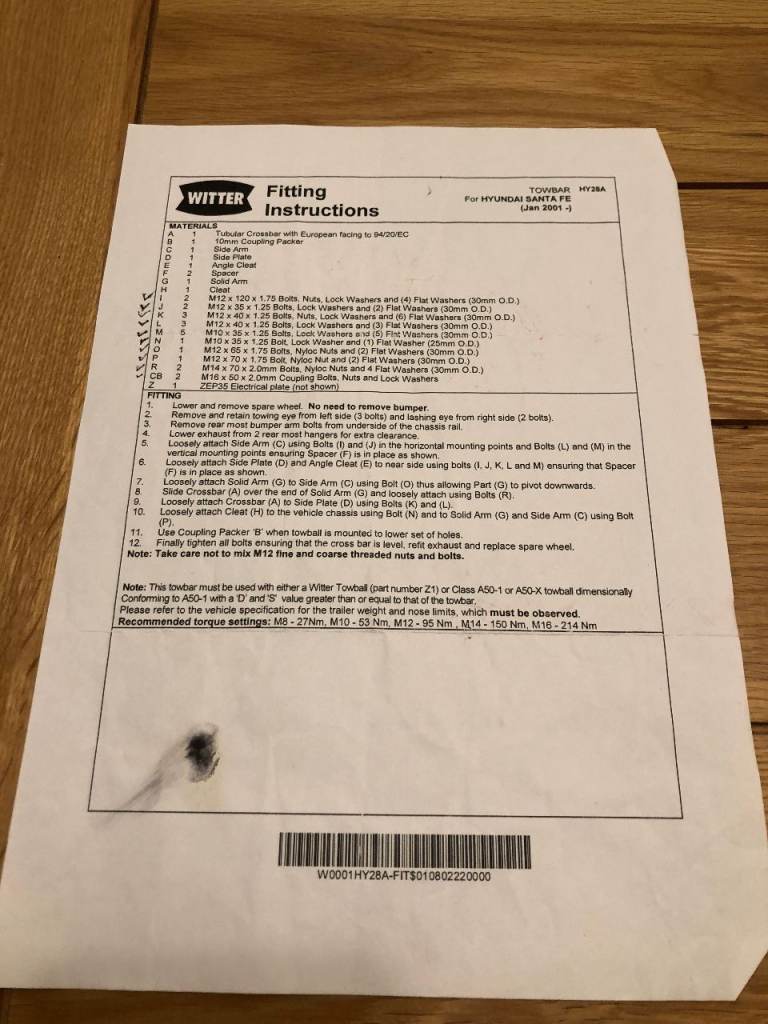 Complete *** Free Witter Tow Bar *** For 2008 Hyundi Sante FE