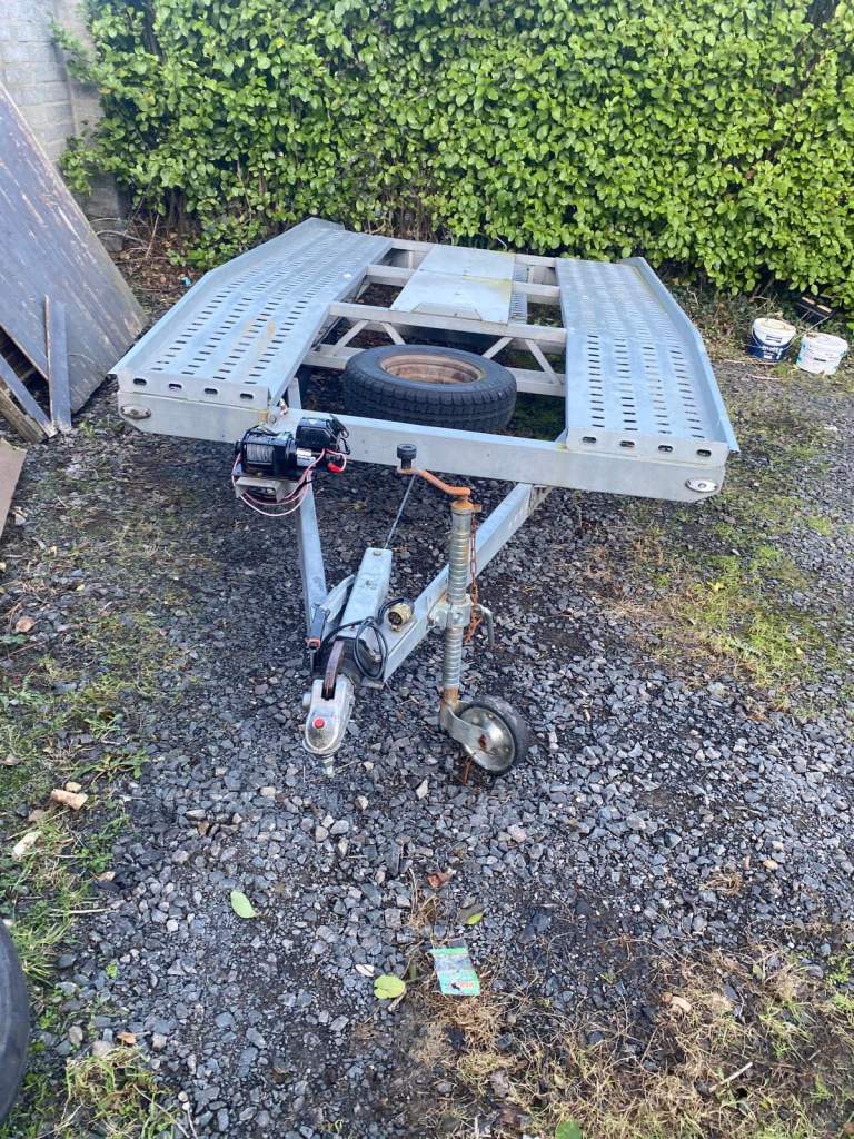 13 foot galvanised car transporter, very strong, ready to use, genuine reason for sale, comes with lock & good tyres & motorised winch & ramps