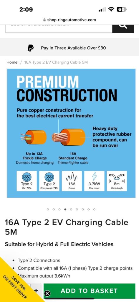 Posting for 14+ years16A type 2 EV Charging Cable 5M
