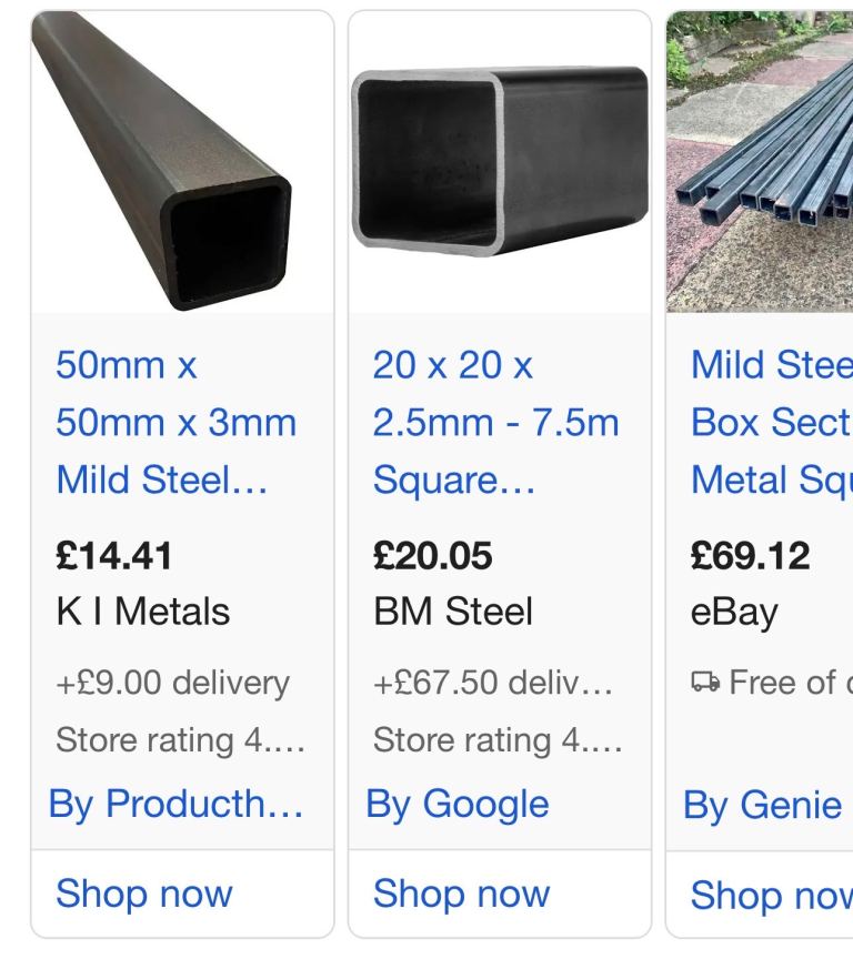 2x2 box section steel mixture of sizes