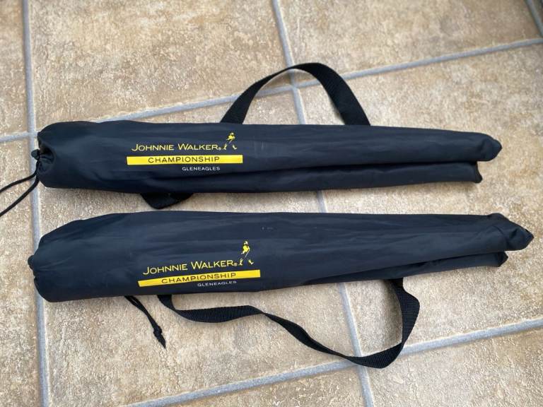 BOTH COME IN A WELL MADE CARRY BAG , BRANDED WITH JOHNNIE WALKER GOLF TOURNAMENT LOGO SO IDEAL FOR ANY SPORTING EVENT WHERE YOU MAY NEED TO GIVE YOUR LEGS A REST !!!!