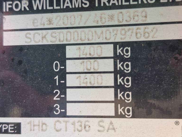 2021 Ifor Williams CT136A Single Axle Trailer (1400kg gross) maximum payload capacity 1000kg.