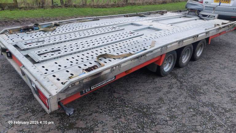 It has been lightly used as we bought another T6 in 2024, so this one has just been put through our own workshop and had all the brakes serviced and fitted with 3 new pairs of brake shoes and 2 new hand brake cables and a new breakaway cable, all the brake drums cleaned and the wheel bearings greased, cable linkages adjusted and tightened, all moving parts on tilt bed greased and lubricated, and is ready to go. We can stand over the work carried out as we do all our own servicing on our fleet and vehicles.
