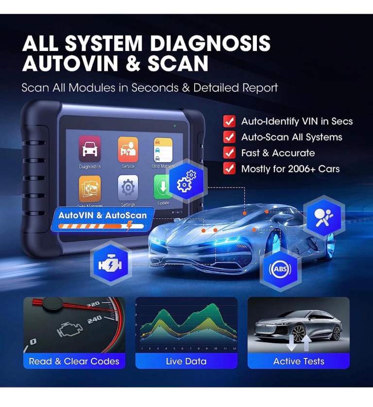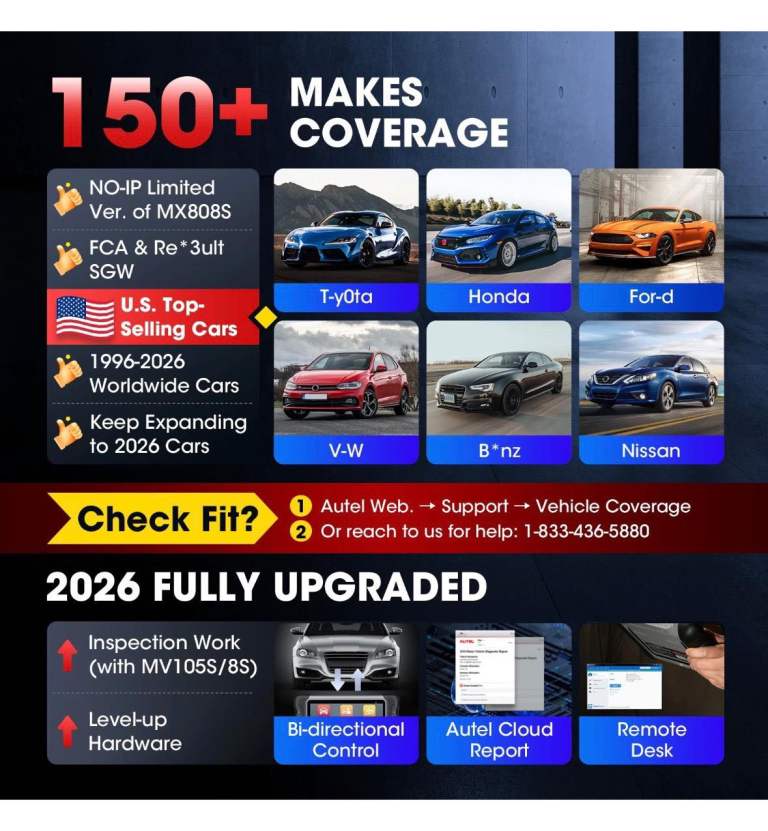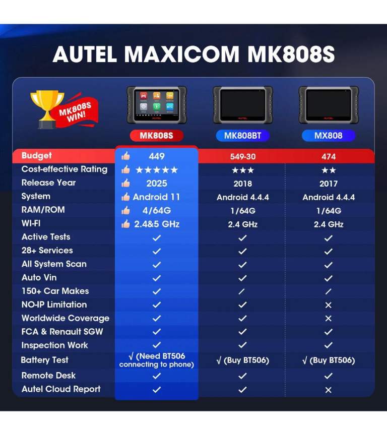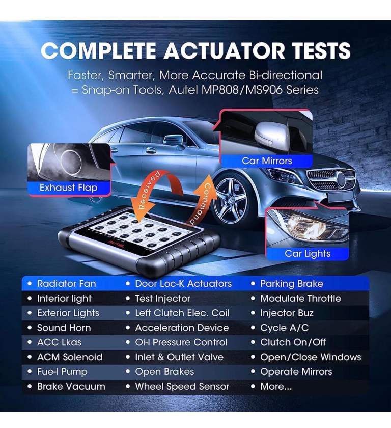 The 2026 Autel MaxiCOM MK808S PRO MX808S Bidirectional Car Diagnostic Scanner Tool is a professional diagnostic equipment designed for passenger vehicles. With a Cortex-A55 quad-core processor and 4GB RAM, it offers fast and efficient diagnostic services. The scanner features a 7-inch LCD capacitive touchscreen, backlit display, and internet updatable software. It comes with a variety of reset services and specialized functions such as Bidirectional Control and Active Test. The Autel MaxiCOM MK808S PRO is a reliable tool for troubleshooting and maintenance tasks, backed by a 5-year warranty and free software updates for 1 year.