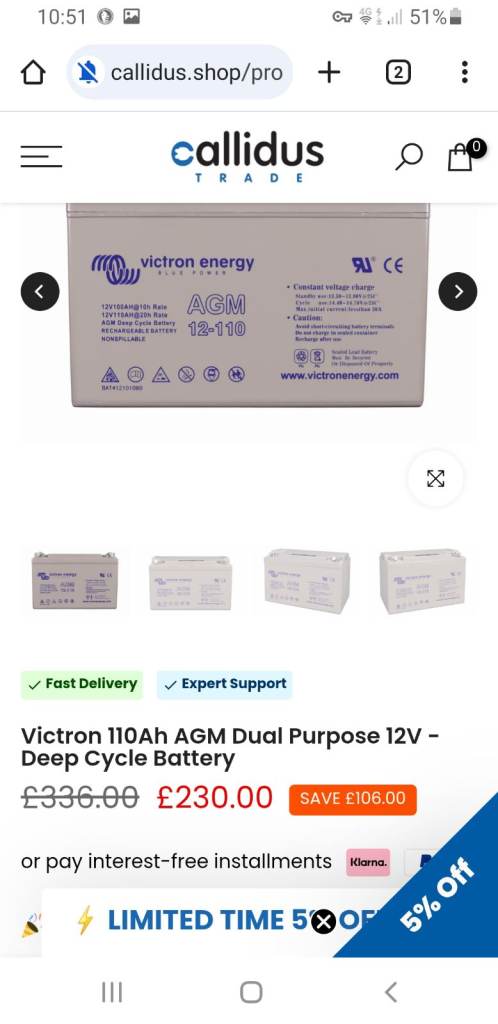 3 x 12v 110aH Victron AGM Deep cycle leisure batterys