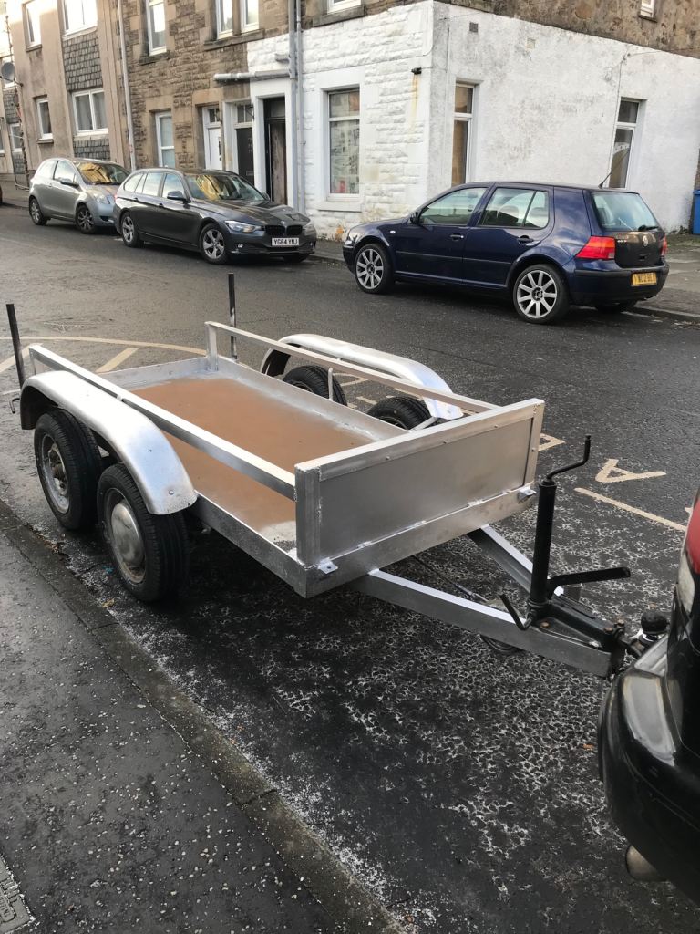 High selling my all steel trailer it can carry 3 ton has four knew tires ramp on back // and got tie down eyes on it can see in picture has got eye towing hitch and a ball towing hitch if needed changed // also has two back drop stands at back has rear ramp as seen in pictures well built if interested call send message the deck is 8 feet long ten feet all in if interested call send message thanks for looking