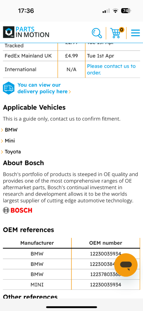 250603006 part number fits the list of cars shown. New unopened. Half price