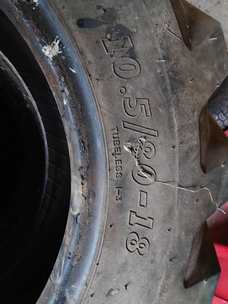 4 10.5/80-18 part warned tyres came of a machine we bought about 1 year ago,couple of them have stitches all hold air all have scratches,CASH ONLY AND COLECTION
