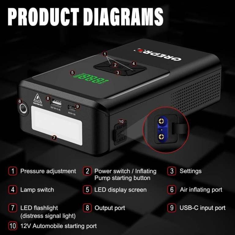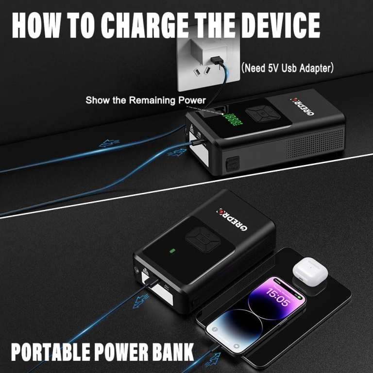 Posting for 17+ years5-in-1 Jump Starter Power Pack, 3000A Car Jump Starter with Air Compressor GP383