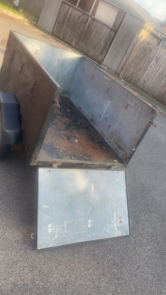 5ft 4” X 3ft 2” trailer, metal floor wooden sides and rear drop back,