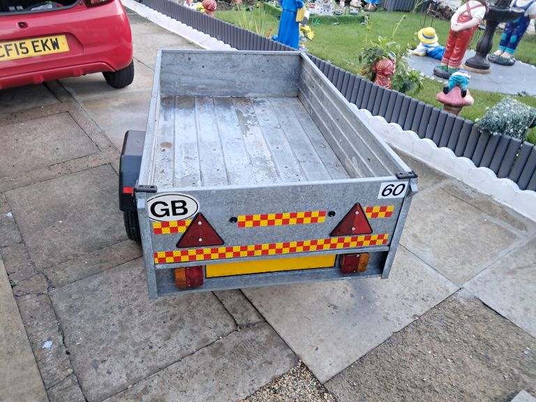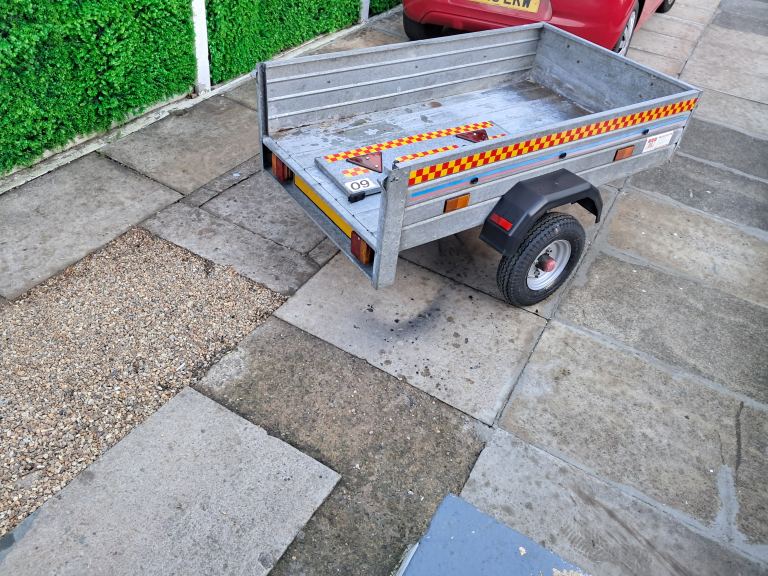 5x3 galvanised car trailer, new mudguards, rain cover, new tyres, lights fitted, ready to use, ideal for small removals, car booter or any general purpose jobs, also new wheel clamp and removable back board,bargain very good condition cheaper than the rest, genuine messages only please, no messages after 10pm please
