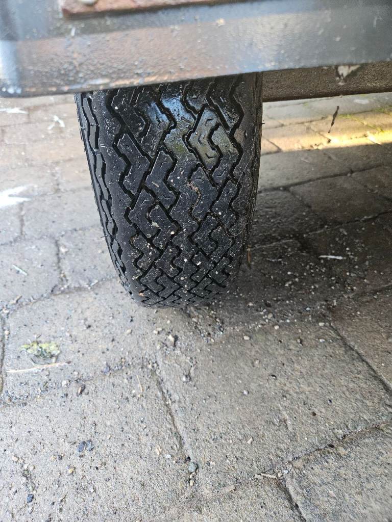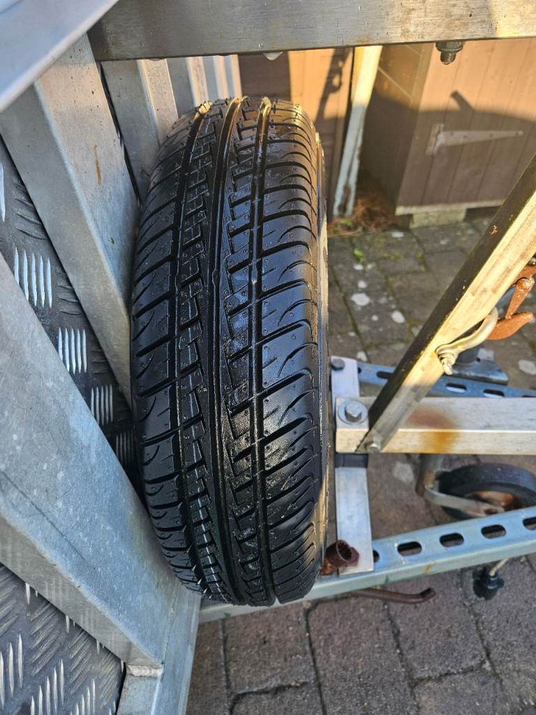 The tyres have a lot of tread and the spare is brand new. Wheel size 145 R 10.