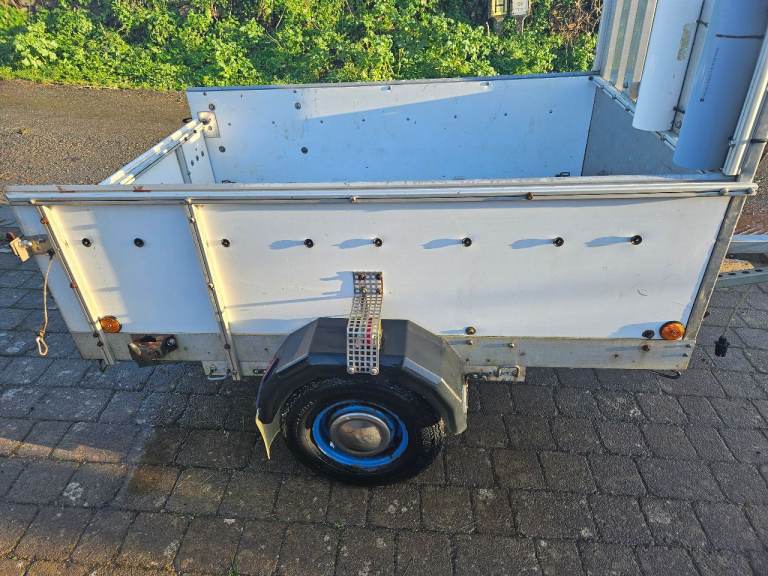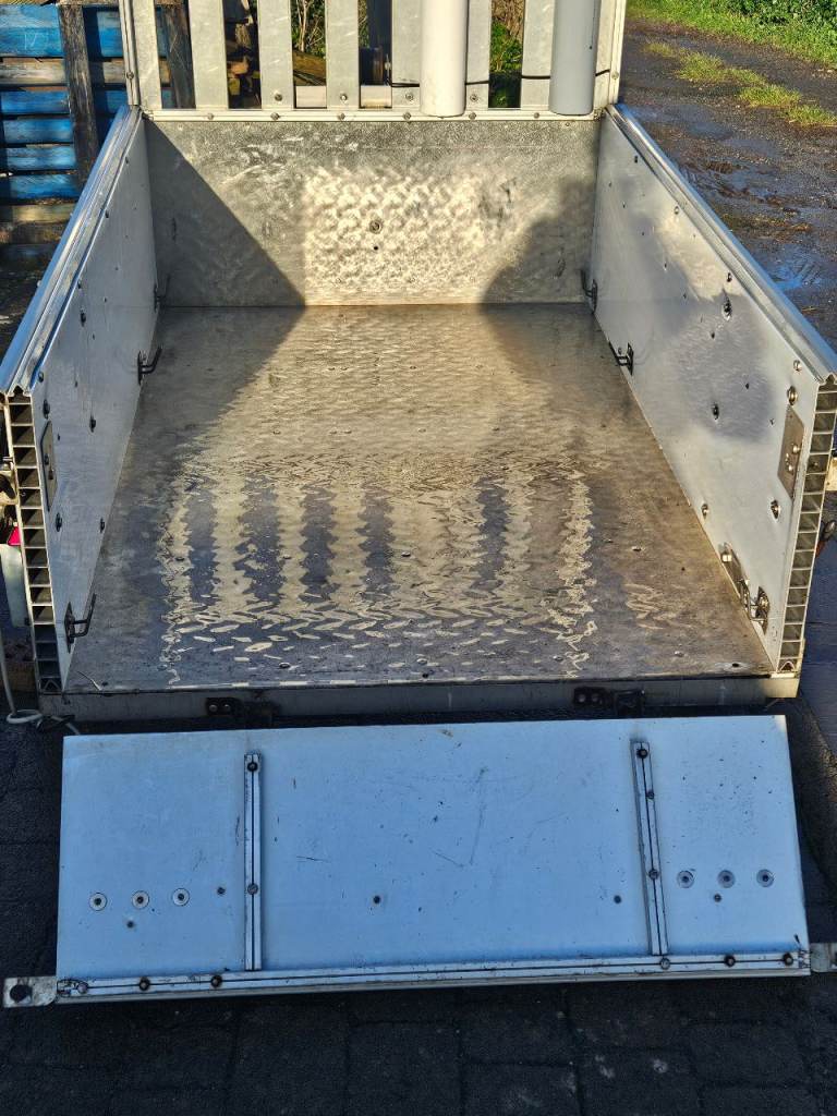 It's high sided and has a drop tail gate which can be removed for longer items.