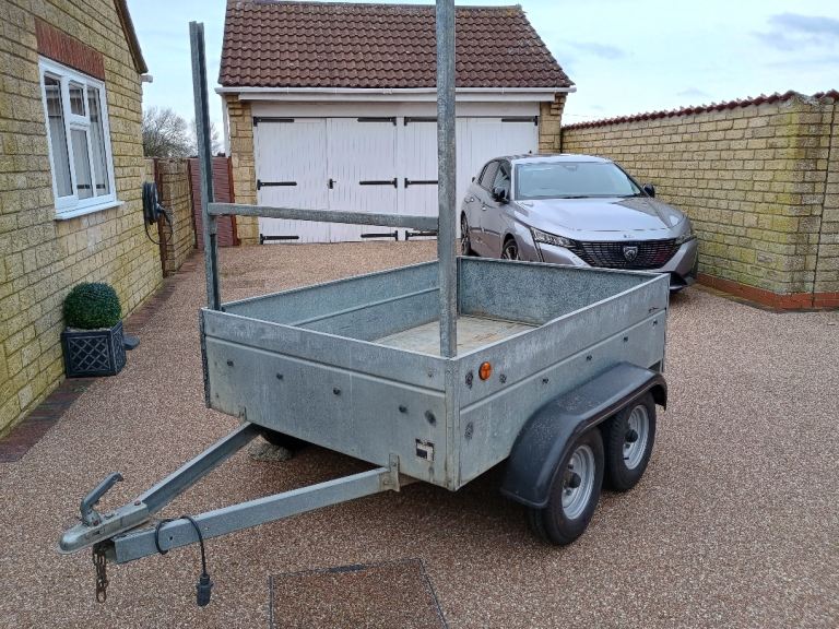 For sale is a 6' x 4' galvanised all metal trailer in very good condition. It has a high bar for caring oversize planks or sheets. I replaced the wheels and tyres a few months ago due to the old tyres having perished from lack of use. The double axle gives the trailer great stability when hitching and un-hitching. The electrics are all good and I have included an adapter for modern tow hook electrics.