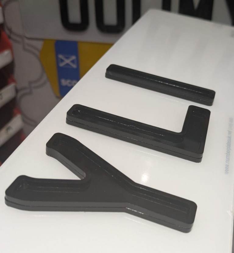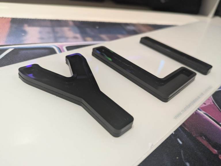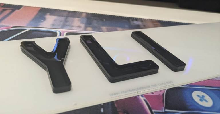 6mm all black ghost 4D laser cut car number plates. Available in Standard size plate, 6 or 7 digit short plate (399mm x 111mm), 5 digit plates (330mm x 111mm), hex 6 and 7 digit plates. Also available in tinted plates and blank plates without company name and BS stamp. Road Use or Show Plates.
