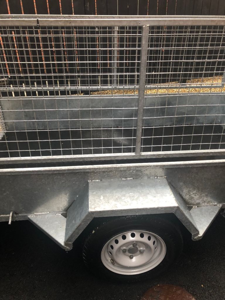 Trailer 7x5 fully galvanised single axle lights etc as new . Galvanised wire sides suit gardener,only used a few times sitting in garage.