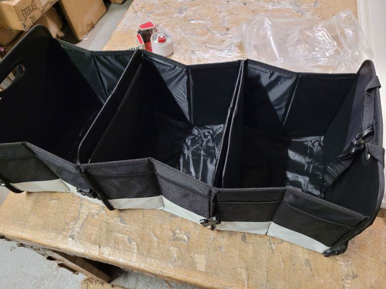 A new still packed Folding car book organizer it has three compartments and mesh pockets at the front the measurements are enclosed in the pictures the r.r.p is 19.99 we are selling it for 10.00 collection only it is st aidens Church summer Bank Road Tunstall st6 5ey we are there mon to fri 9am to 3.30pm Saturday 9am to 3pm closed Sundays with thanks ( we only hold items for 24hours only) .