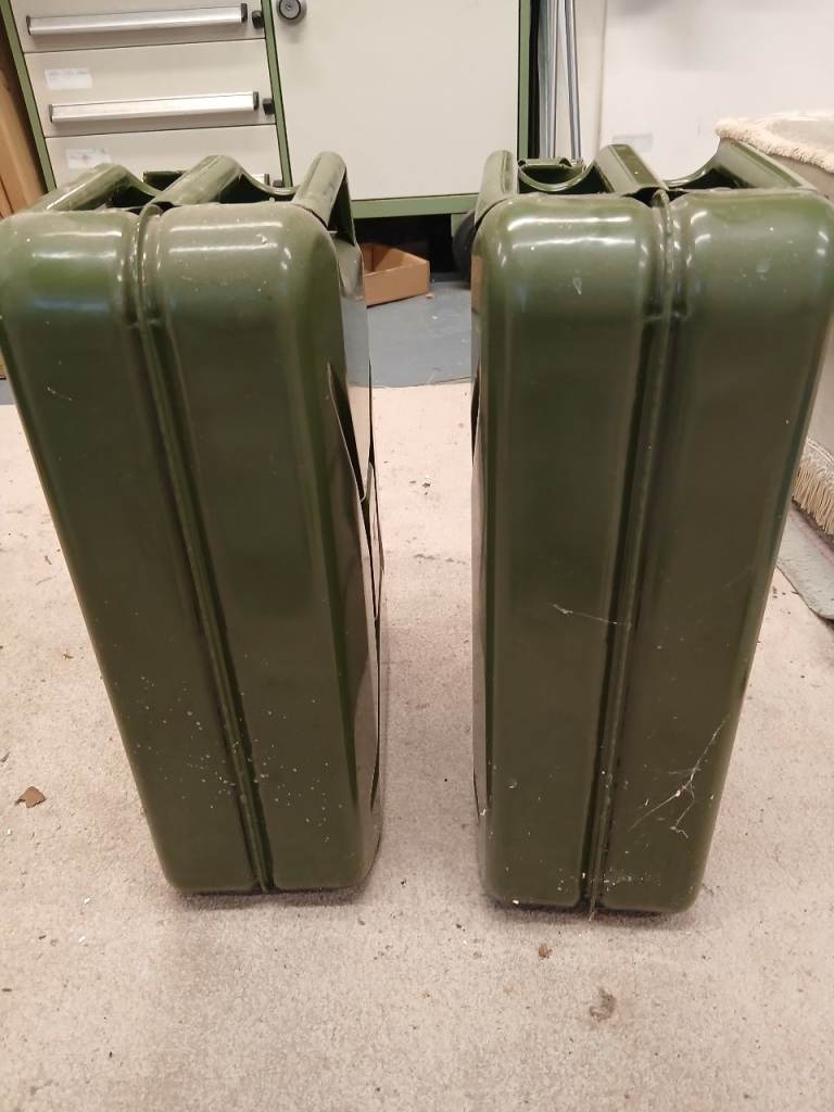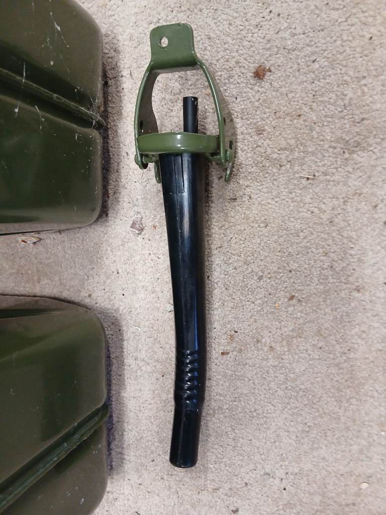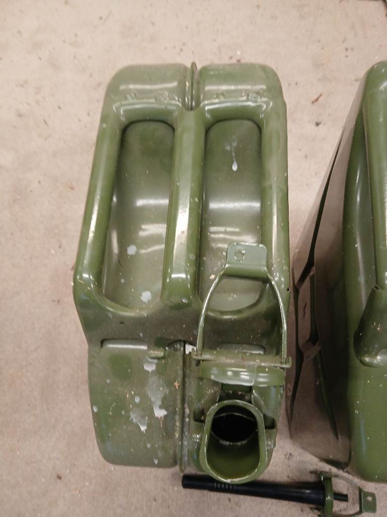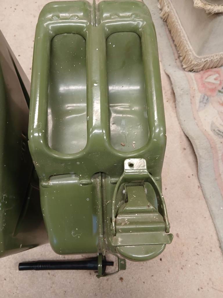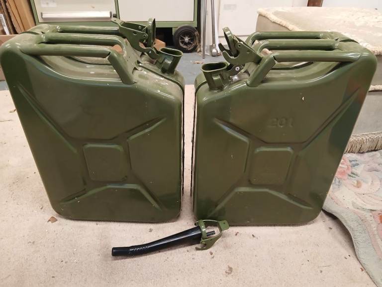 Posting for 12+ yearsA pair of 20l metal jerry fuel cans with spout.