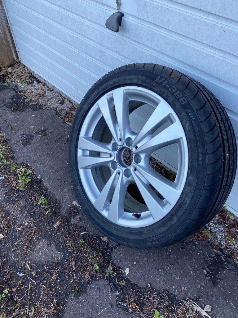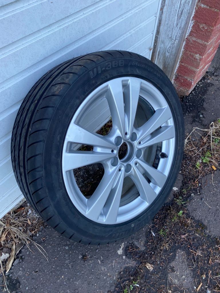 Alloy wheel and new tyre was carried as a spare never used for a Mercedes A180.