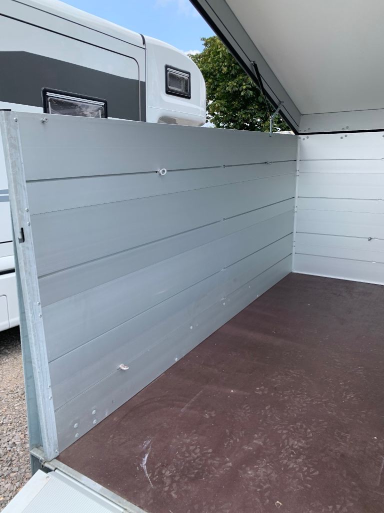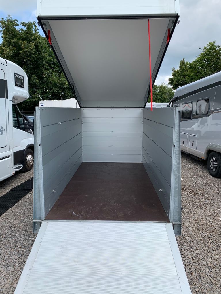 This trailer has an own weight of approximately 575kg. The standard gross load capacity is 2500kg, resulting in a useful (net) load capacity of 1925kg. This is the allowed maximum mass minus the own weight. Additional weight for modification must be taken into consideration. Due to roof rack the canopy can be supported when raised.