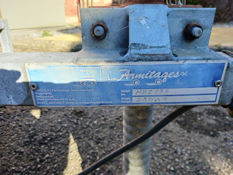 For sale : transport trailer made by Armitages suitable for mobilty scooters possible other uses lawnmowers, bicycle's, camping etc, very well made fully galvanised trailer with independent suspension, drop down loading tailgate, adjustable stabilisers, jockey wheel, light weight easy tow, plated for 250kg, bed size is 5ft x 2ft 6", good condition with light use, no longer required, Bargain only £250, please message to arrange viewing / collection, thank you.