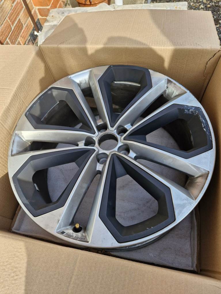 Alloy wheel 21 inch from 2023 Audi q5 quattro, unfortunately damaged due to pothole, still held air in tyre but removed and replaced, anyone that knows Audi and these wheels will know they have a £2grand price tag per wheel!! This wheel has been checked over and is viable to be reconditioned at a cost of £150 , only reason for not doing was that the refurbished would loose the audi logo!!! I'm looking for serious offers only!!! The price on add is just to get add active!! cash on collection only.