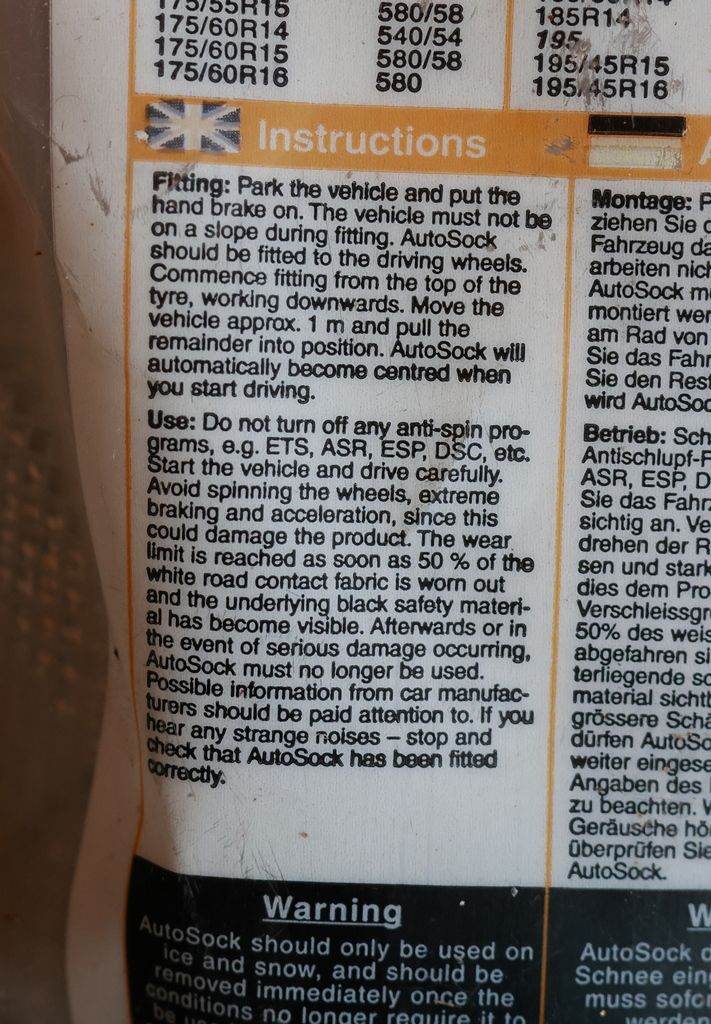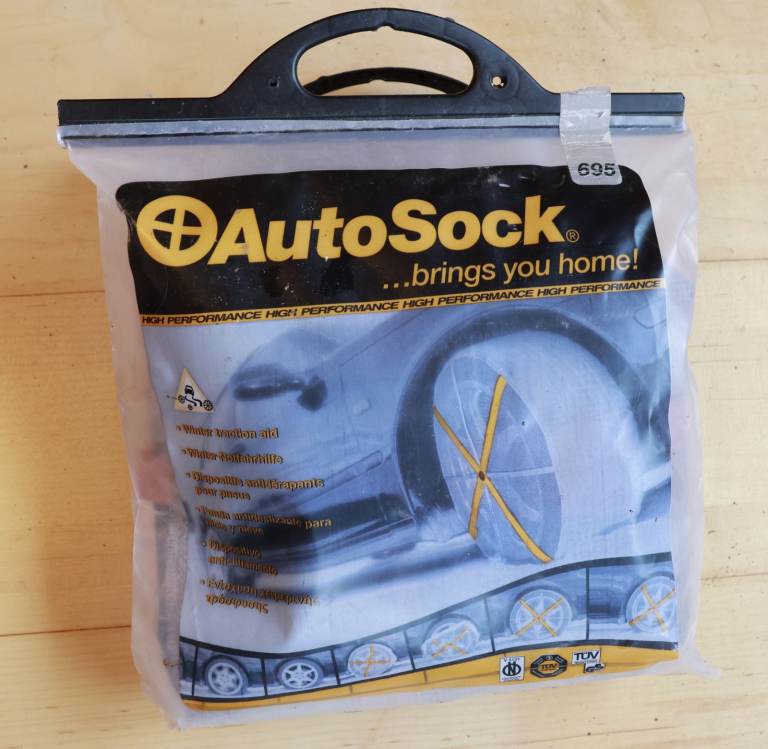 Snow socks for car tyres (pair). Fits various tyre sizes (please check size chart - see pic). Tried on for fit but never used in earnest. wrong size for current car