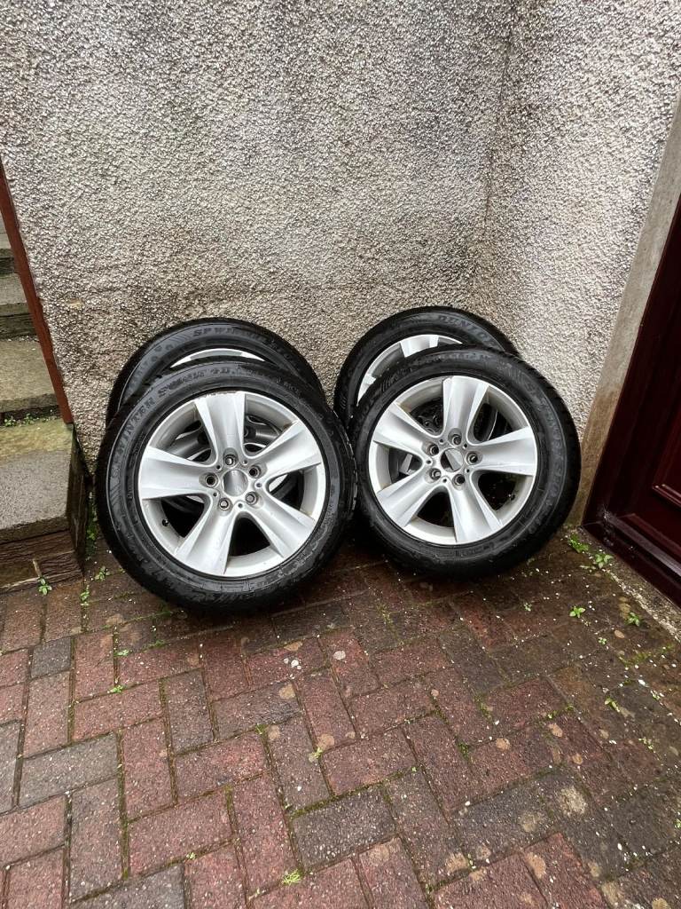 Posting for 9+ yearsBMW 17 inch Alloy Wheels With Winter Tyres and wheel stand.