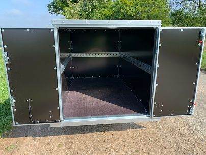 This trailer comes in Black or White with lockable barn doors. (Other colours available at extra cost).