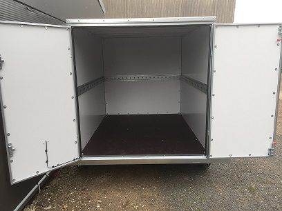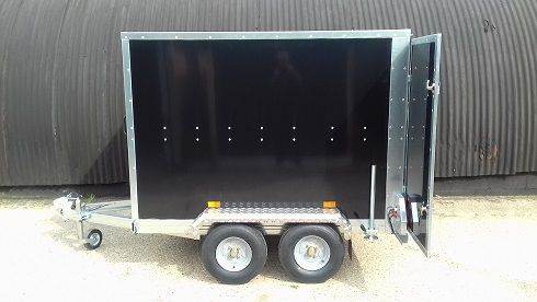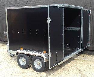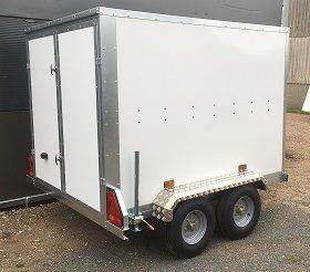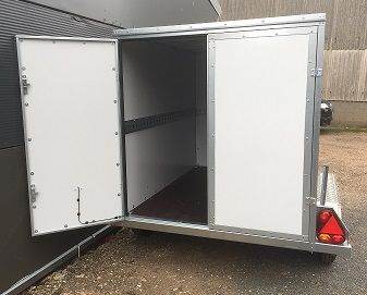 1Stop Trailers Ltd are pleased to offer this twin axle trailer which comes in black or white, as standard, with lockable rear doors.