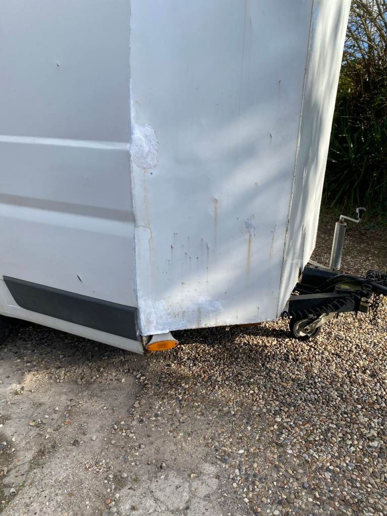 This trailer is the rear end of a Fiat Ducato van, which is well constructed.