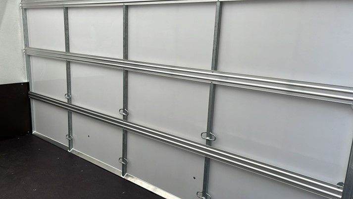 The trailer is panelled with high gloss glass fibre plywood laminate one piece side sheets,
