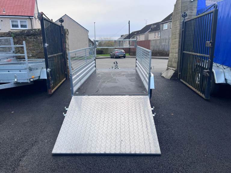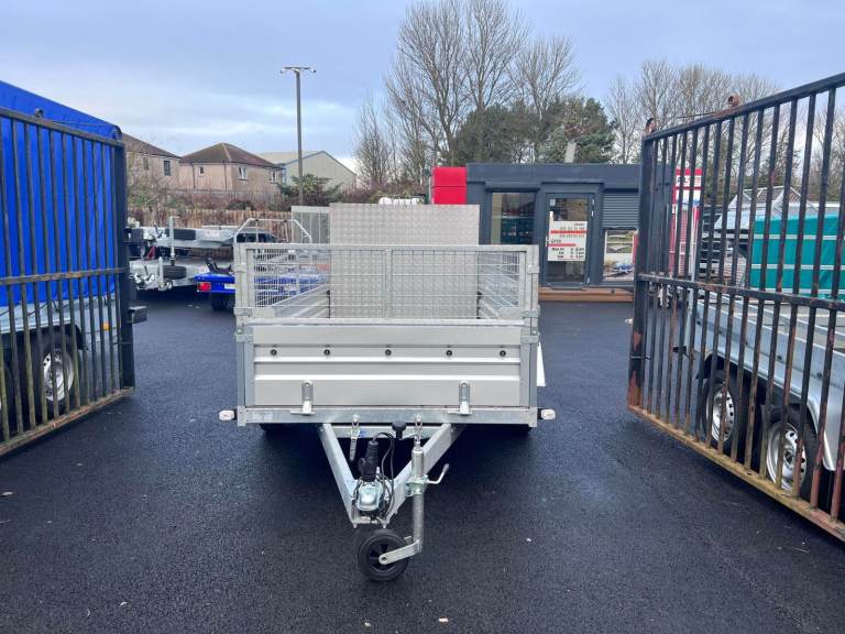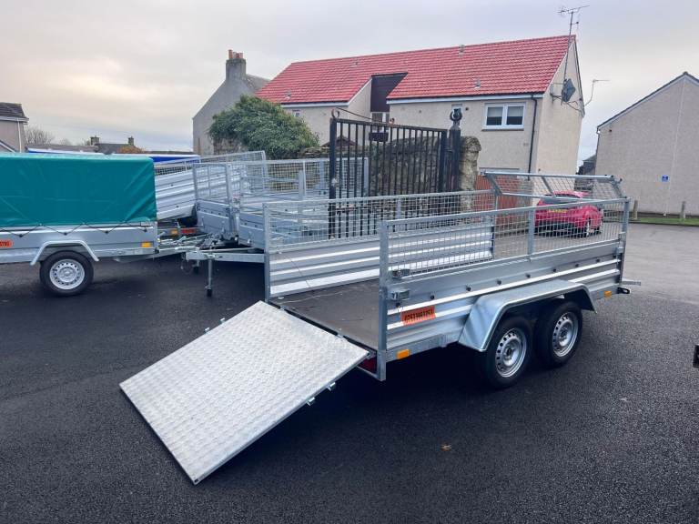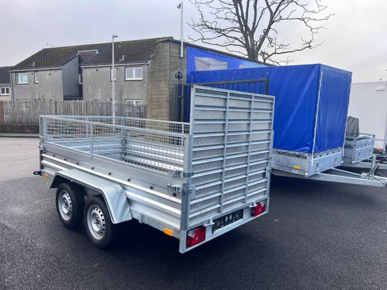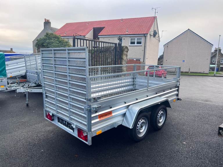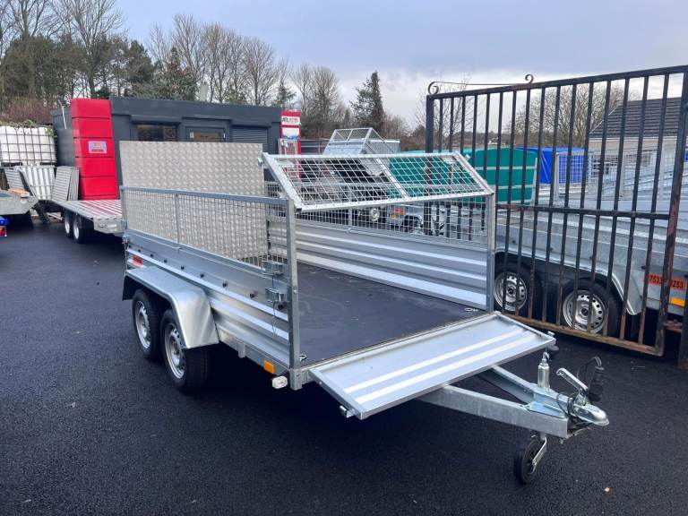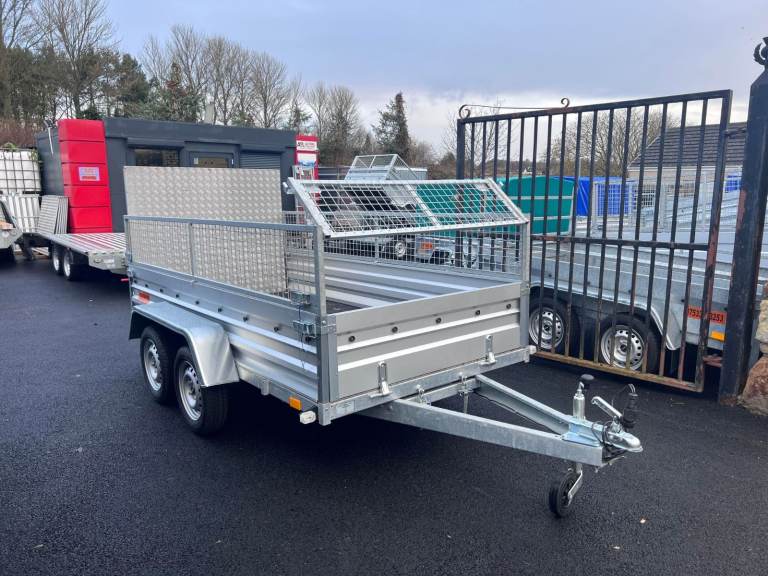 BRAND NEW 10FT X 5FT TWIN AXLE TRAILER WITH 40CM MESH AND RAMP 750KG UN BRAKED