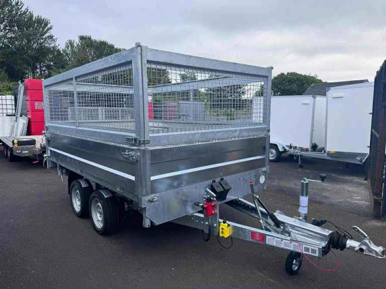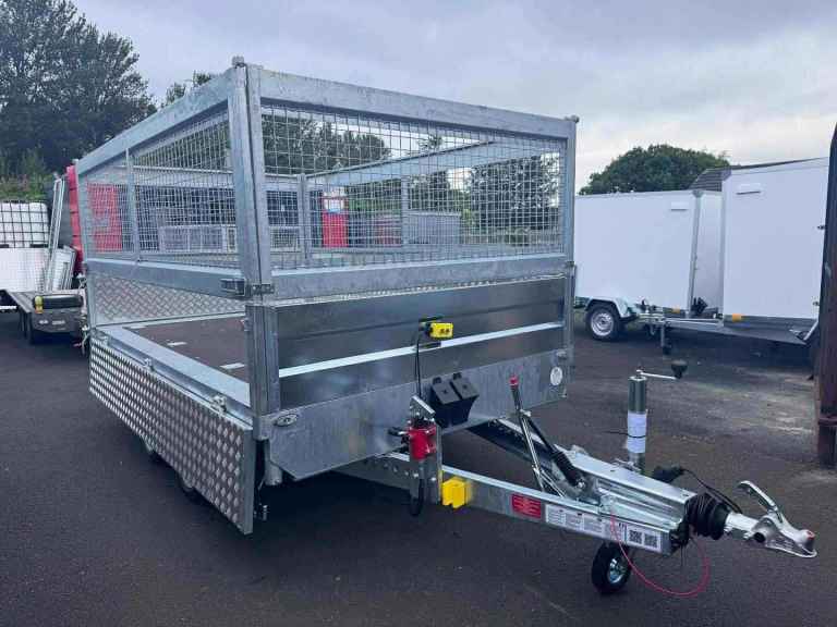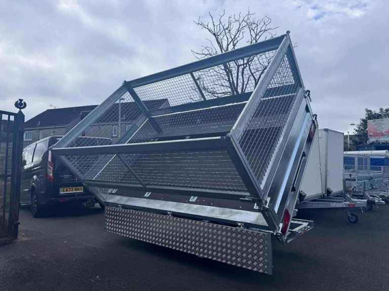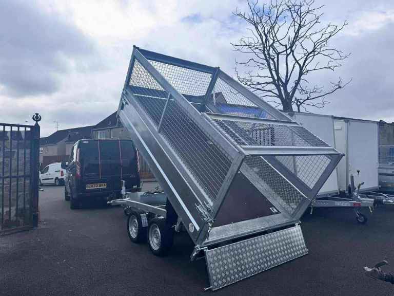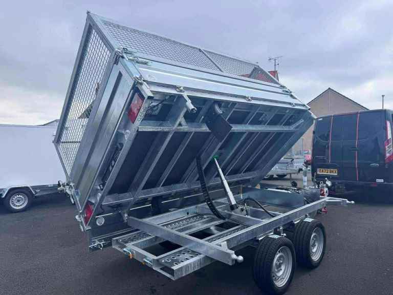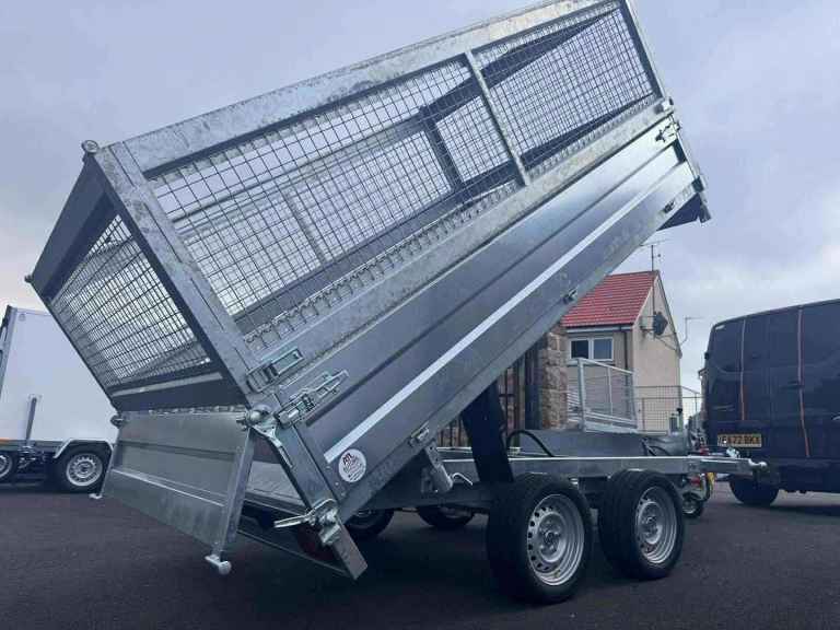 BRAND NEW 10FT X 6FT TWIN AXLE 3 WAY ELECTRIC TIPPER TRAILER WITH MESH SIDES AND RAMPS 3500KG