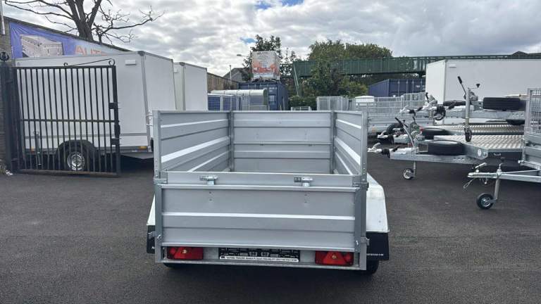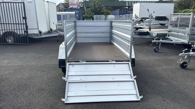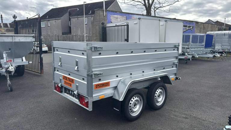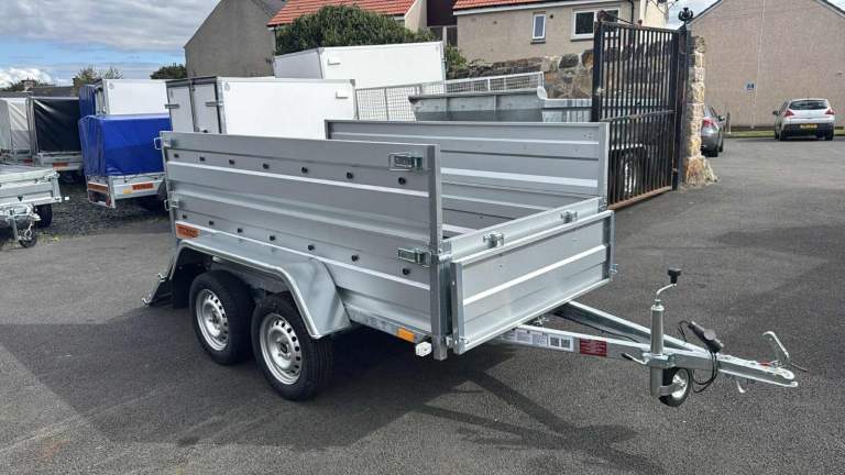 BRAND NEW 7,7FT X 4,2FT TWIN AXLE DOUBLE BROADSIDE TRAILER 750KG UN BRAKED