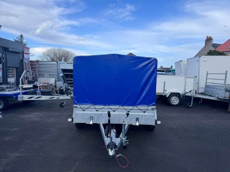 BRAND NEW 8,4FT X 5FT TWIN AXLE MASTER TRAILER WITH FRAME AND COVER 1300KG BRAKED
