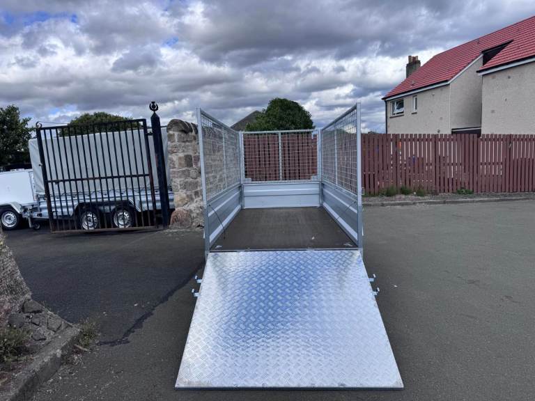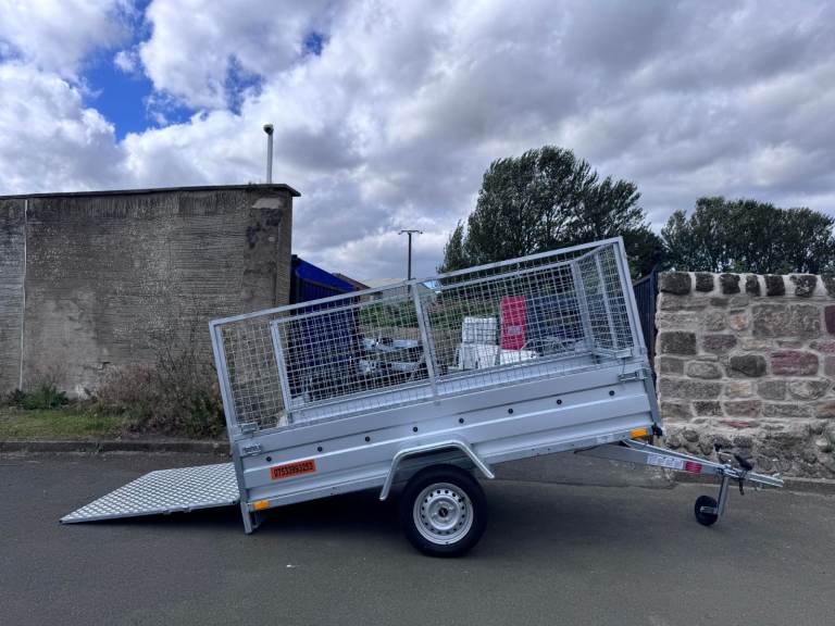BRAND NEW 8,7FT X 4,2FT SINGLE AXLE TRAILER WITH 80CM MESH AND RAMP 750KG