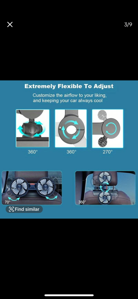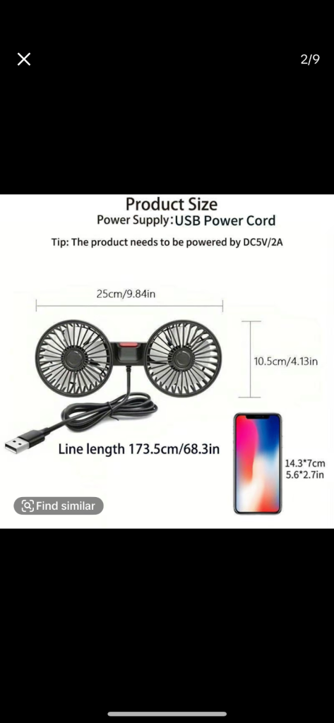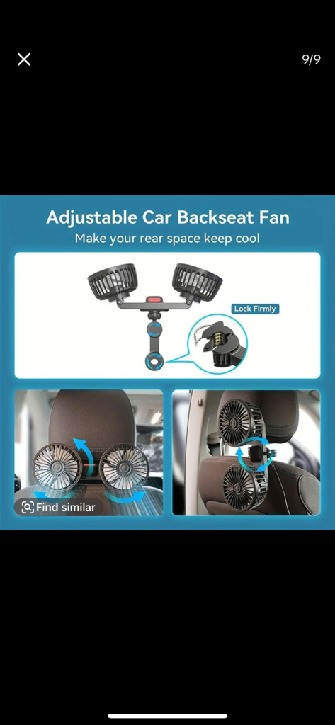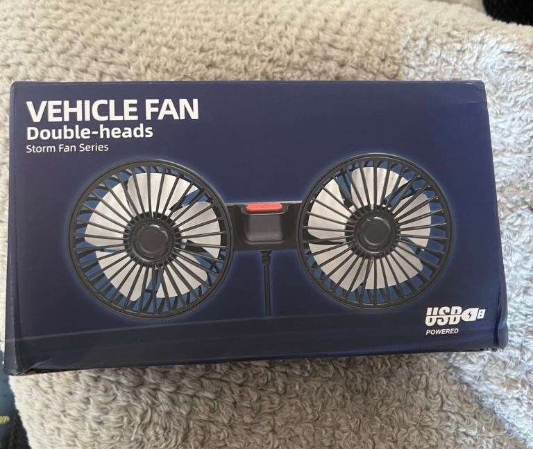 Brand new in unopened box. Adjustable Car Backseat Fan, Double-head Electric Clip Fan, Strong Wind Rear Seat Back 360 Degrees Rotation Large Air Volume Fan, Car Ventilation Tool. £15