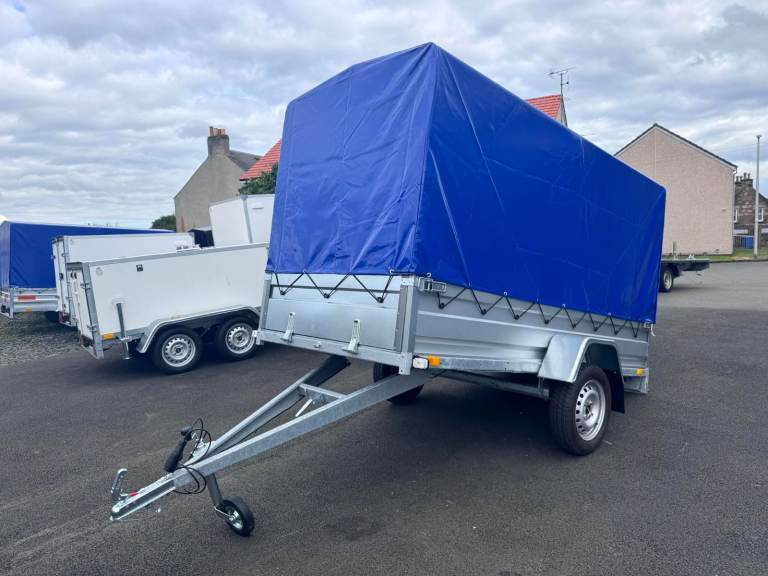 BRAND NEW NIEWIADOW 8,7ft x 4,2ft SINGLE AXLE TRAILER WITH FRAME AND COVER (150CM) 750KG