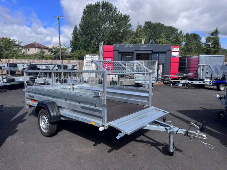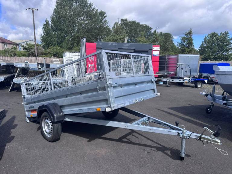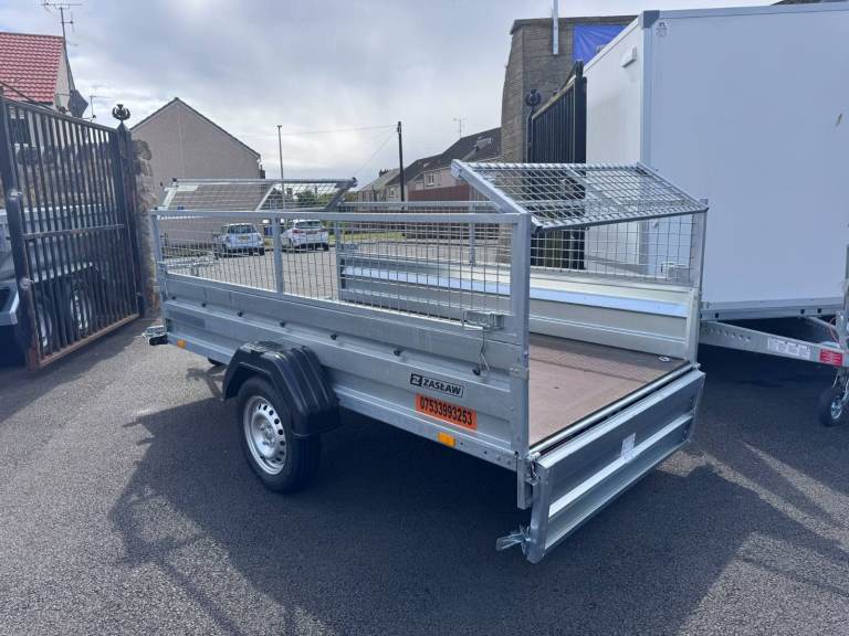 BRAND NEW ZASLAW 265SU 8,7FT X 4,4FT SINGLE AXLE TRAILER WITH 40CM MESH TIPPING 750KG