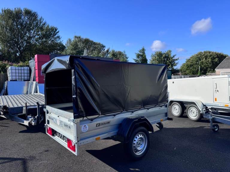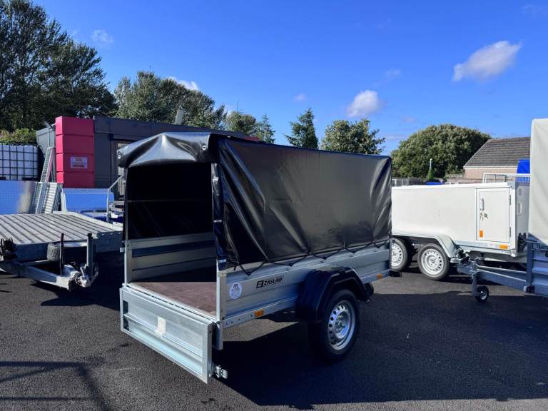 BRAND NEW ZASLAW 7FT X 4FT SINGLE AXLE TRAILER WITH FRAME AND COVER 750KG