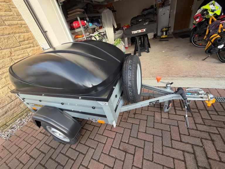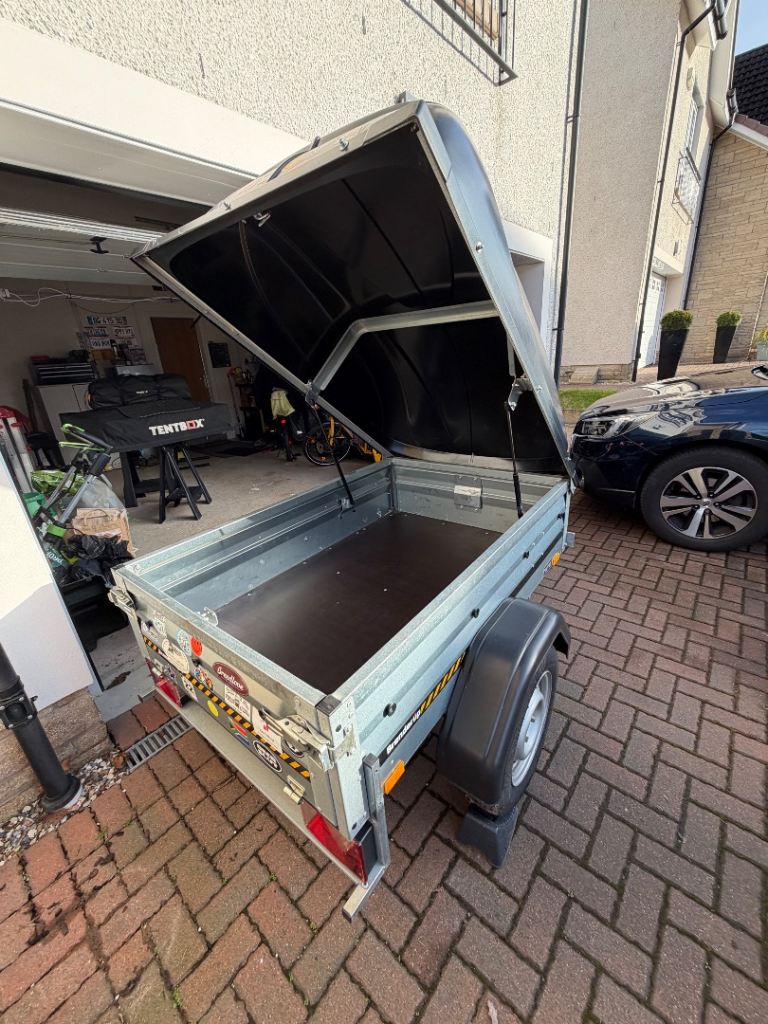 Brenderup 1150 lightweight unbraked galvanised trailer with locking cover, wheel lock and ball lock, brand new spare wheel. Very easy to tow, great condition. Delivery possible up to 30 miles.