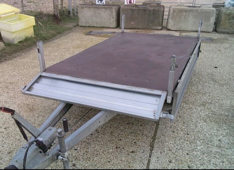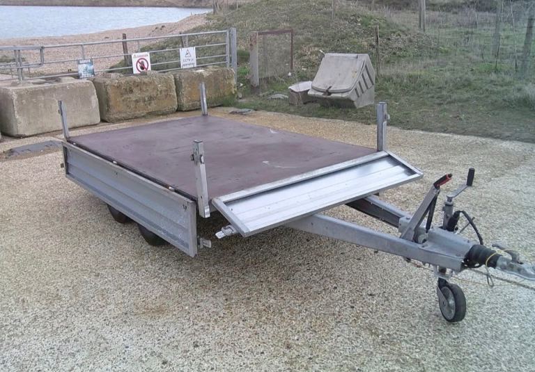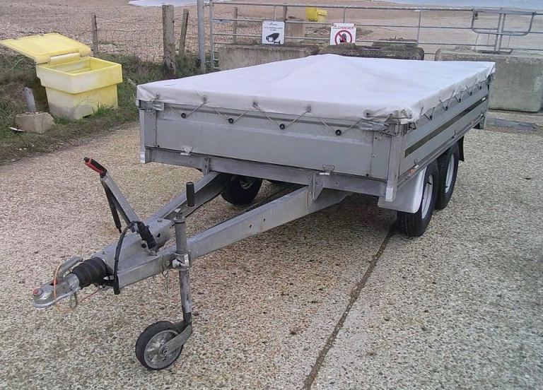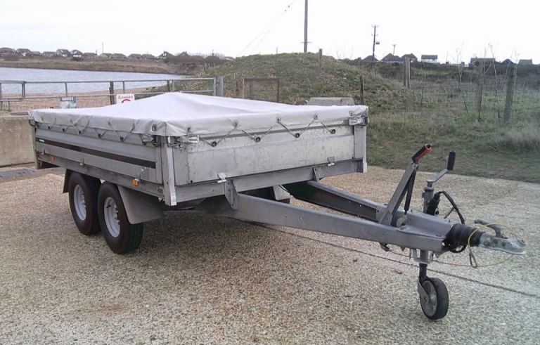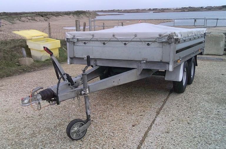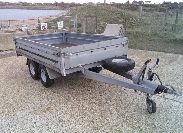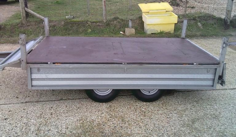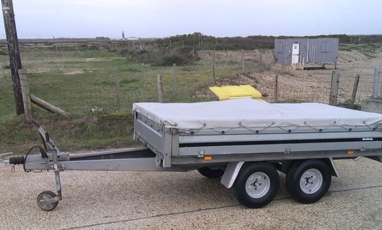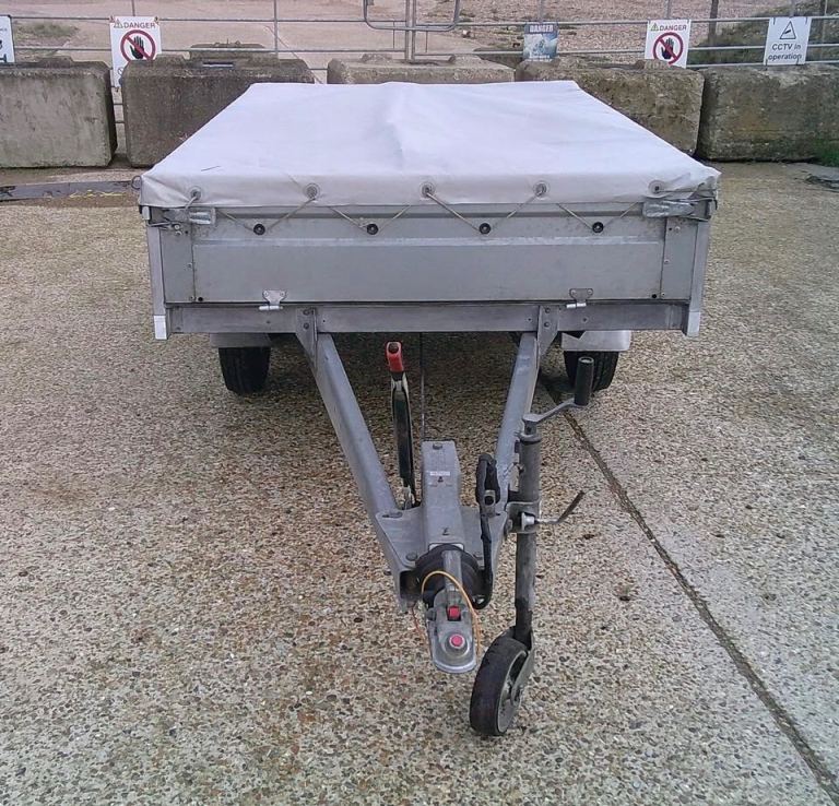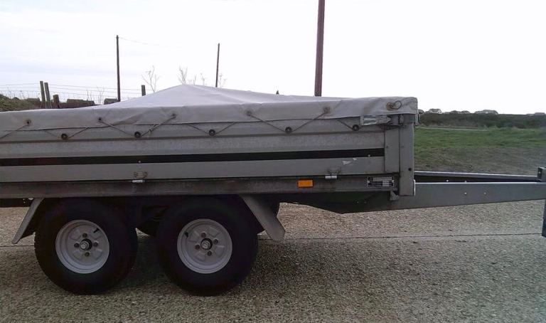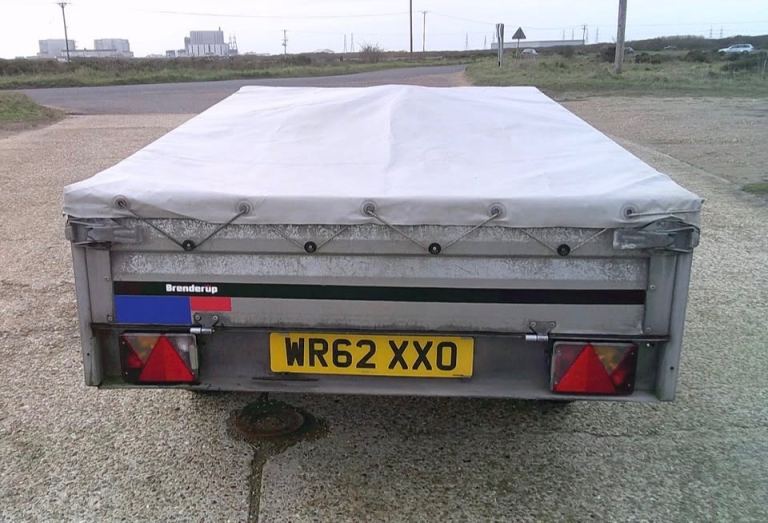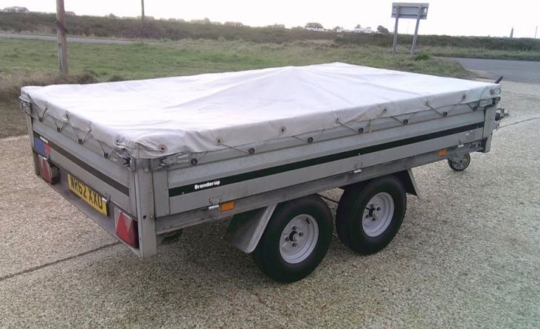 Brenderup 3251 STB 1300kg Trailer. 8ft 4 inches Long x 5ft Wide twin-axle in very good condition. All brakes included hand brake are good and serviced. The original Brenderup 18mm phenolic resin non-slip base is in excellent condition. All sides can drop down and remove to make into a open flat bed trailer. All tyres are good with plenty of tread and with spare in almost new condition. 6x tie down rings. Comes with fitted cover, bulldog expensive wheel clamp, spare wheel and bracket and quick clip-in number plate holders. All lights work with 7-pin plug for attaching to vehicle.