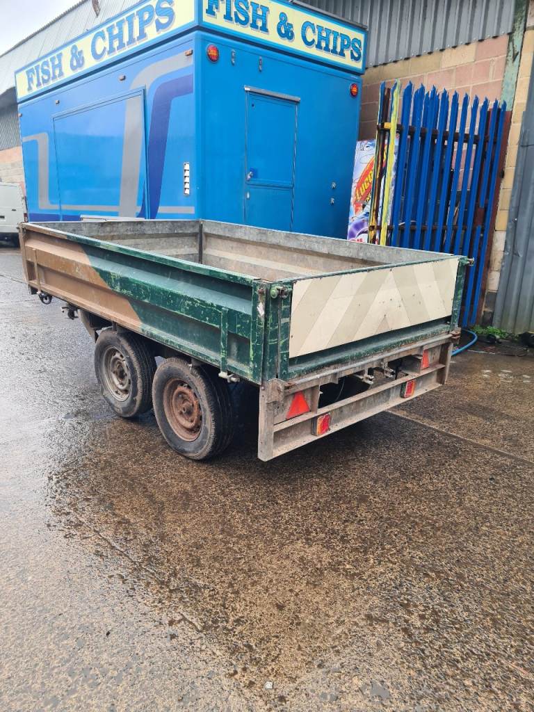 Good trailer here for sale twin axle 2.7 ton gvw tows very very well just had new brakes all round and new lights the sides and tailgate drop down fir easier loading/unloading making it perfect for builders/ground workers all in all a very good strong trailer that is ready for work PLZ PLZ no more messers £775 ovno