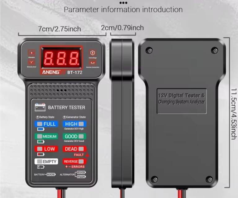 Posting for 12+ yearsCar Battery Tester ANENG 12V Status Indicator Charge System Analyzer Voltage Meter Digital Display